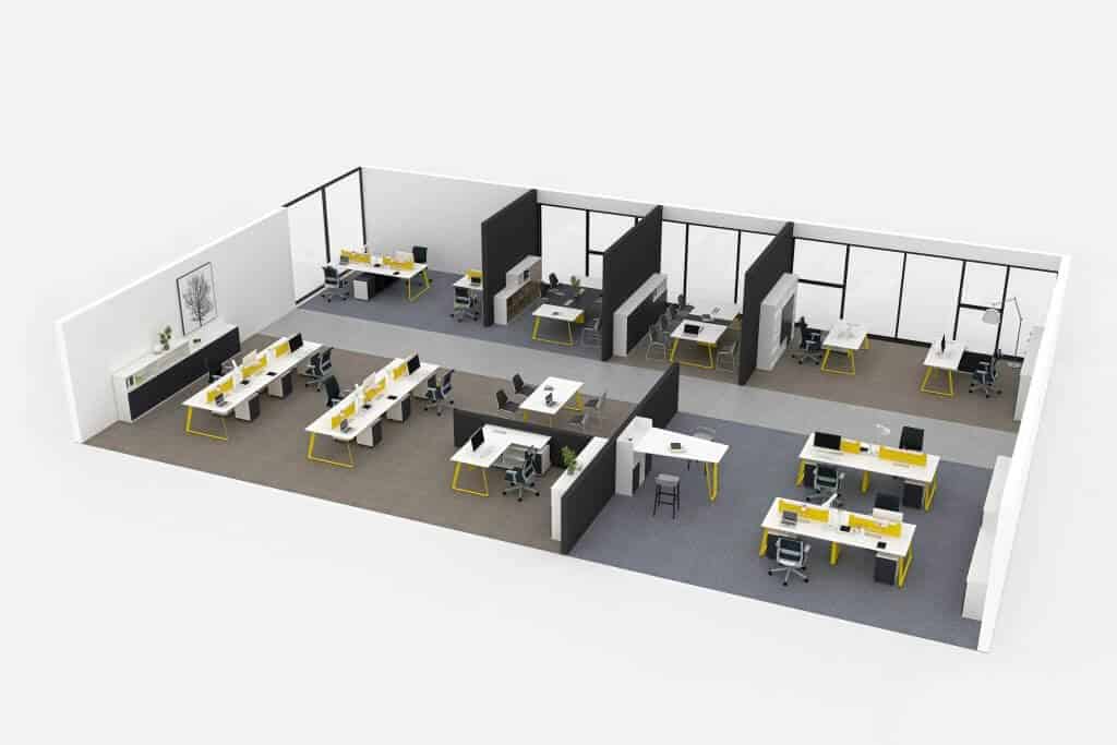 מערכת ZONE כוללת מערכת מנהלים , עבודה עבודה  , באנצ'ים, משטחים לבחירה .ארונות , שלוחות ,שידות מגירות .